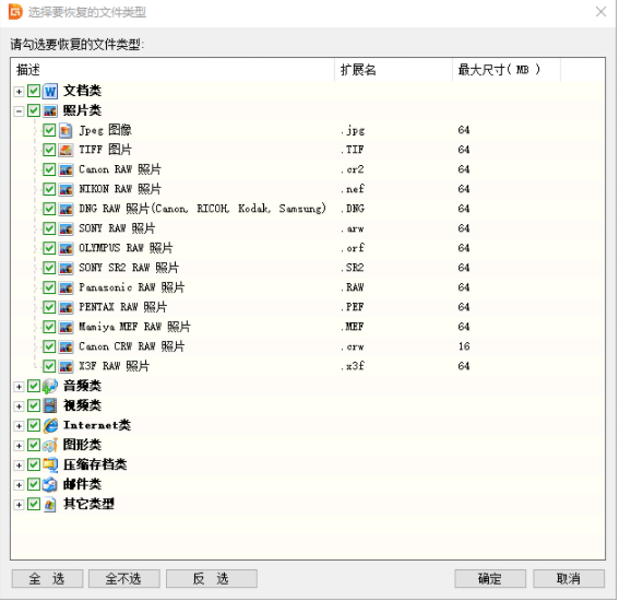3、大家注意在開始掃描之前,還可以點擊"選擇文件類型",這樣即可深度掃描指定文件類型。