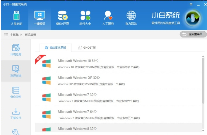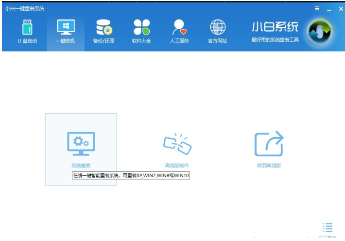 1、打開小白一鍵重裝系統并選擇重裝系統。