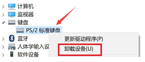 3、右鍵存在錯誤的驅動,點擊“卸載設備”,卸載完成后,我們只需要重新啟動電腦即可自動修復。
