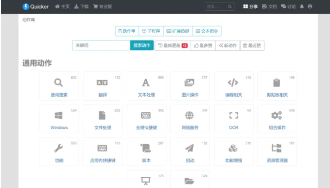 如果你在使用電腦的時候常常需要使用幾個軟件的功能,但是老是這樣麻煩讓你的效率始終不高的話,那么Quicker就是一款幫助用戶提高電腦使用效率的軟件,它可以快速組合各個廠商軟件的常用功能,無需單個查找,在需要使用時,一鍵直達。同時,各種命令可以根據不同的需求,進行自由組合,Quicker的優勢就在于有個龐大的動作庫,我們只需要復制里面的動作就能完成相關操作。進入官網動作庫,找到你準備安裝的“動作”,點擊右邊的 “復制到剪貼板”,然后中鍵喚醒quicker,找到一個空白的地方點擊“粘貼分享的動作”就可以使用了,讓你省去了許多步驟。