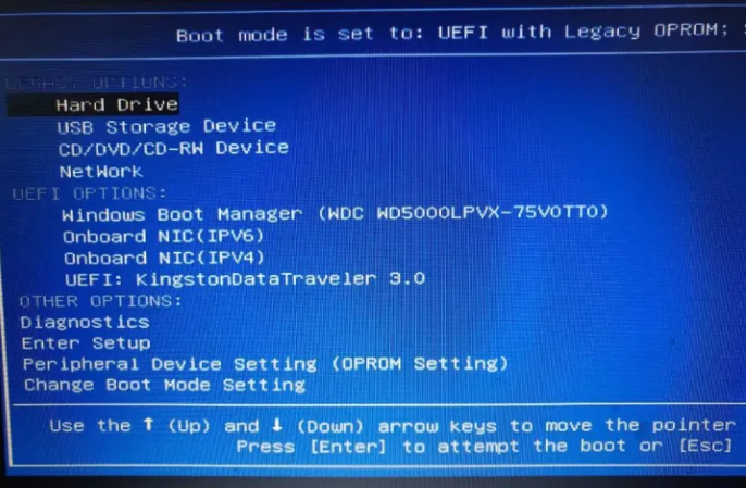 開機的啟動方式分為Legacy和UEFI引導,按照下圖存儲數據的結構進行選擇即可。