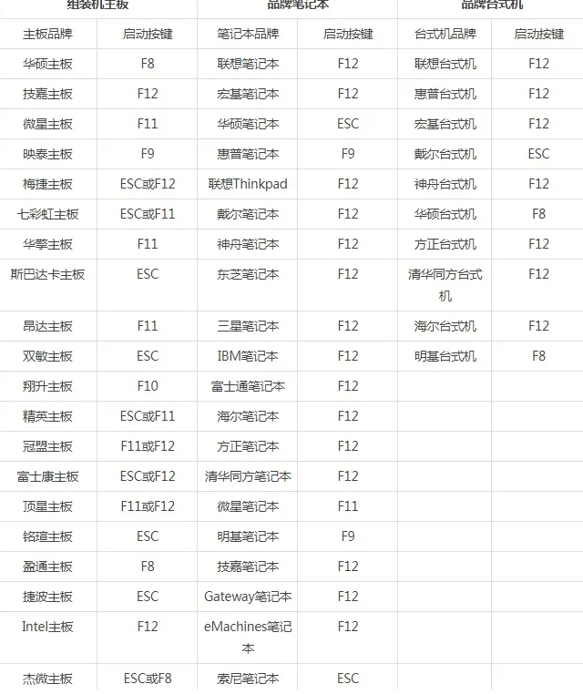 1.首先在重裝系統之前我們先了解自己電腦的啟動鍵是什么,大家根據自身情況進行參照。