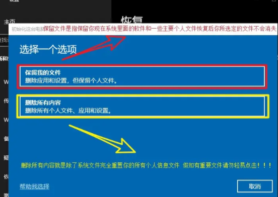 1.假如你不是升級新版本系統(譬如win7升win10)只是打算重置一下電腦(適用于電腦出現bug) 恢復按鈕可以幫你恢復到出廠設定 不需要重裝系統解決。