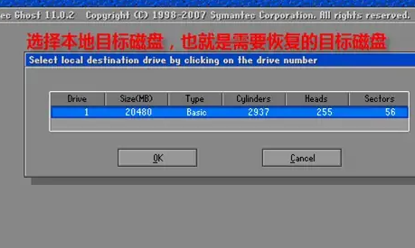 4、然后,完成上述步驟后,選擇要安裝的目標磁盤,然后單擊“OK”按鈕,如下圖所示,然后進入下一步。
