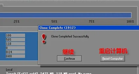 7、最后,完成上述步驟后,將彈出一個對話框,可以選擇繼續或重新啟動計算機,系統就安裝完成了。