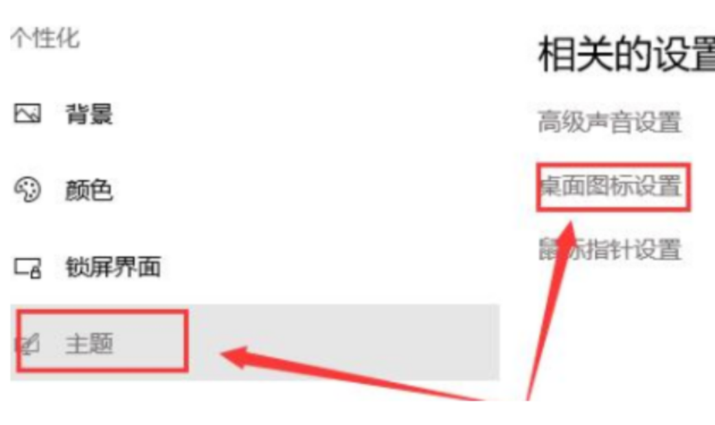 2.進入頁面后,我們在左邊的選項中找到“主題”,在相關的設置選項下面找到“桌面圖標設置”,點擊進入。