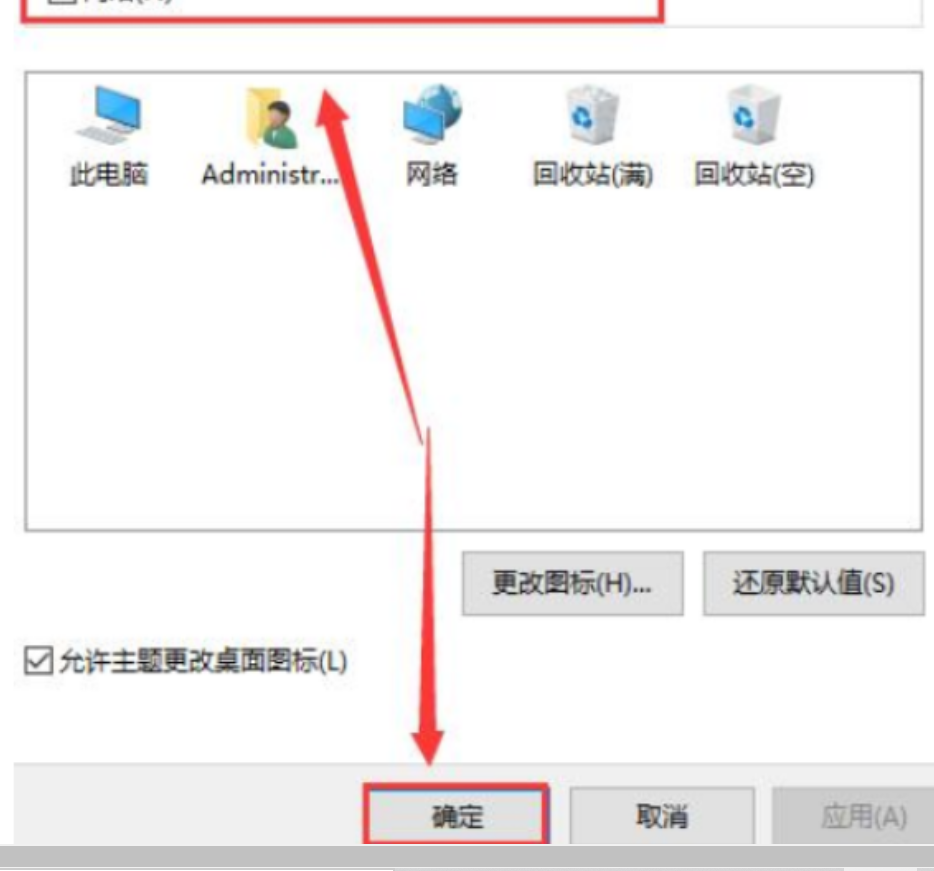 3.將“桌面圖標”里的選項,全部勾選,點擊確定,然后在此電腦中將需要的文件拖到桌面上就可以了。
