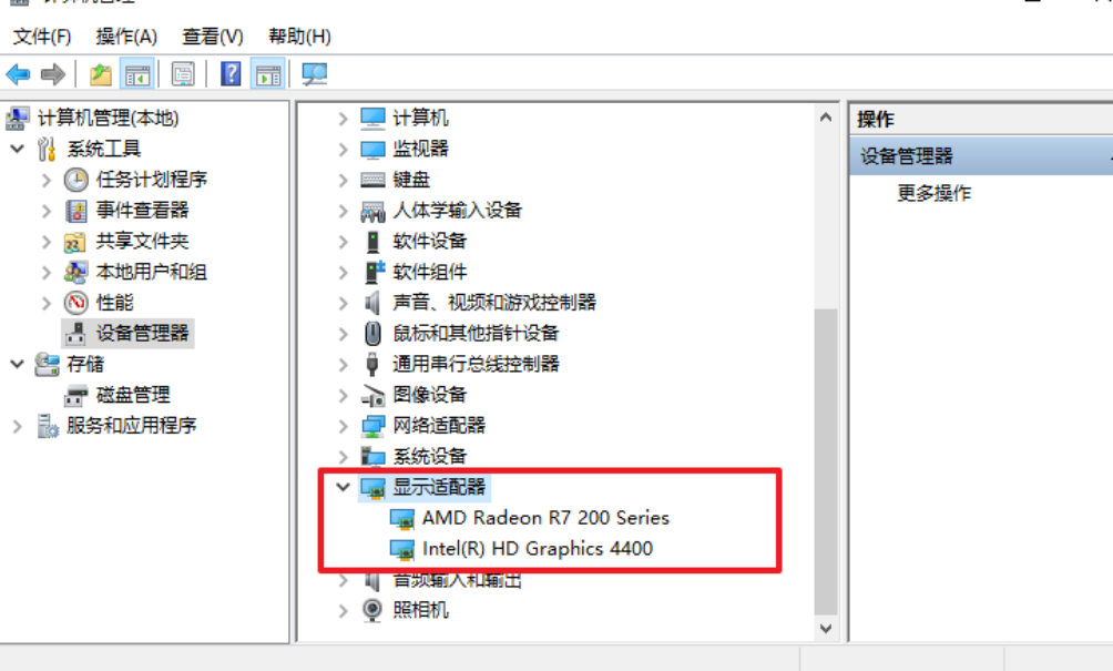 2、在計算機管理界面,在左側欄點擊“設備管理”,在對應的右界面找到“顯示適配器”。