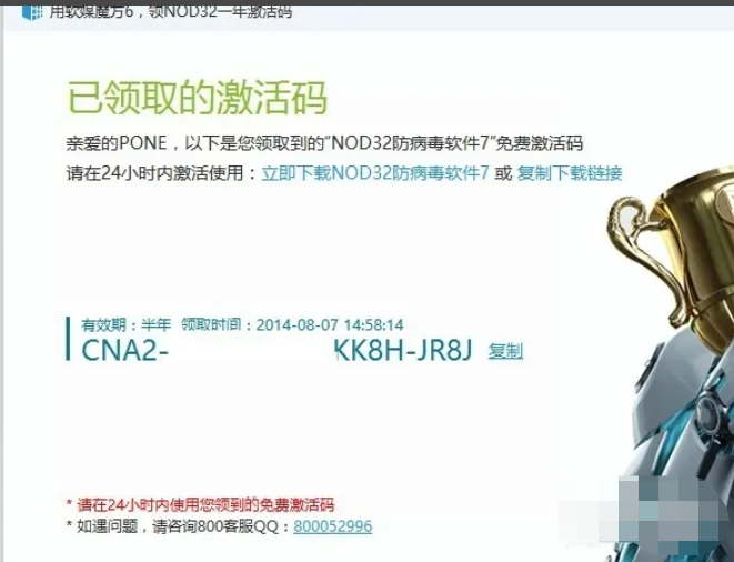 領到的NOD32激活碼必須在24小時內激活,否則將在24小時后自動失效