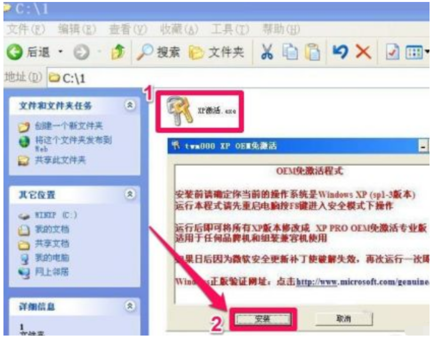 3.然后進入安全模式后,找到之前下載的XP激活.exe程序,點擊。