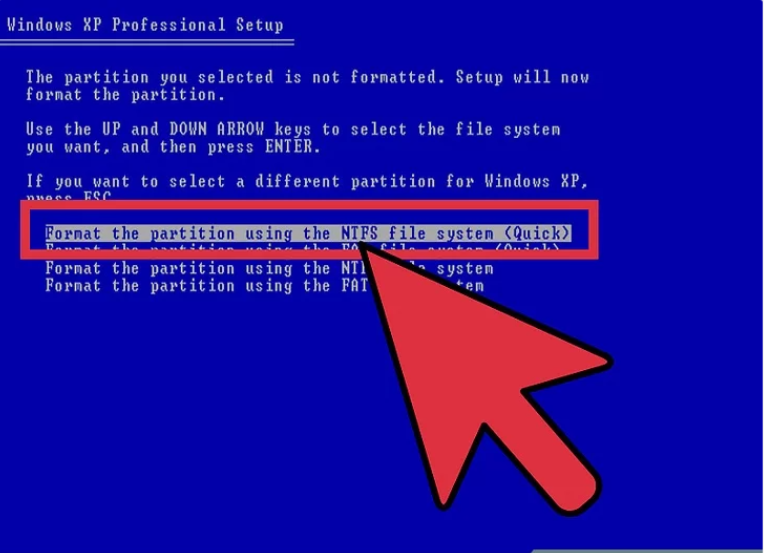 8、選擇“使用 NTFS 文件系統格式化分區”并按 ENTER。NTFS 是首選方法,它支持比 FAT 更大的每個分區的磁盤空間,并且包括文件系統級別的安全功能。NTFS 還包括系統級壓縮。