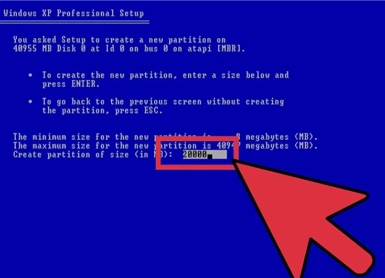 6、創建一個新分區。選擇未分區空間并按“C”。這將打開一個新屏幕,您可以在其中根據可用空間設置分區的大小。以兆字節 (MB) 為單位輸入新分區的大小,然后按 Enter。