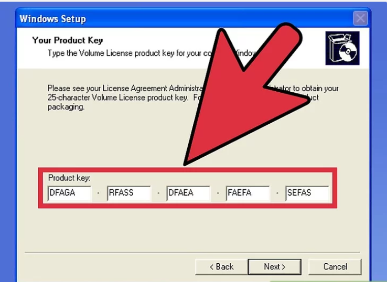 1、在您的軟件包上的標簽上或計算機本身上找到您的 Windows XP 產品密鑰。它是一個由 5 組字符組成的字符串(每組 5 長),用破折號分隔,總共 25 個字符。因此本次安裝xp系統需要產品密鑰才能完成xp系統的安裝。