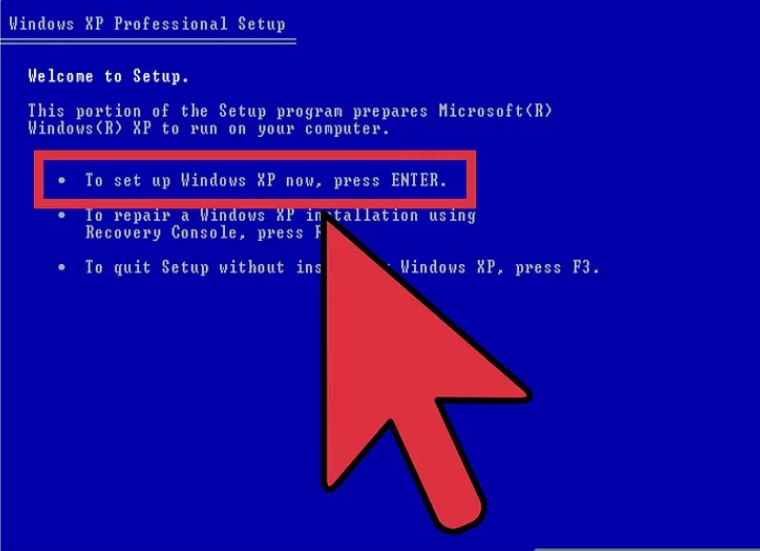 4、按 ENTER 開始安裝。加載完成后,您將被帶到如下屏幕。您有幾個選項,但如果您正在安裝或重新安裝 Windows XP,您將需要按 ENTER 開始安裝配置。