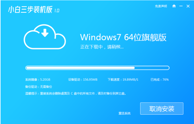 2、耐心等待工具將會自動下載win7系統文件等等。