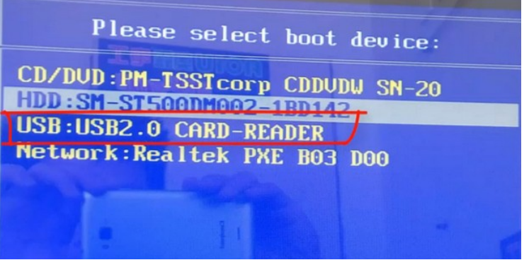 3、把u盤插入我們需要重裝系統的電腦,開機不斷按熱鍵進入界面選擇u盤啟動,選擇進入pe系統。