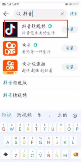 4、輸入之后我們會在搜索框下方發現有“抖音短視頻”的APP,點擊進入即可。