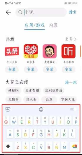 3、此時將會彈出手機輸入鍵盤,我們在鍵盤中輸入“抖音”。