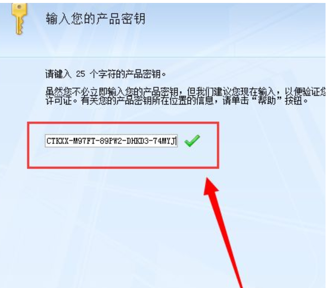 3、將上面的秘鑰輸入進入,點擊下一步。