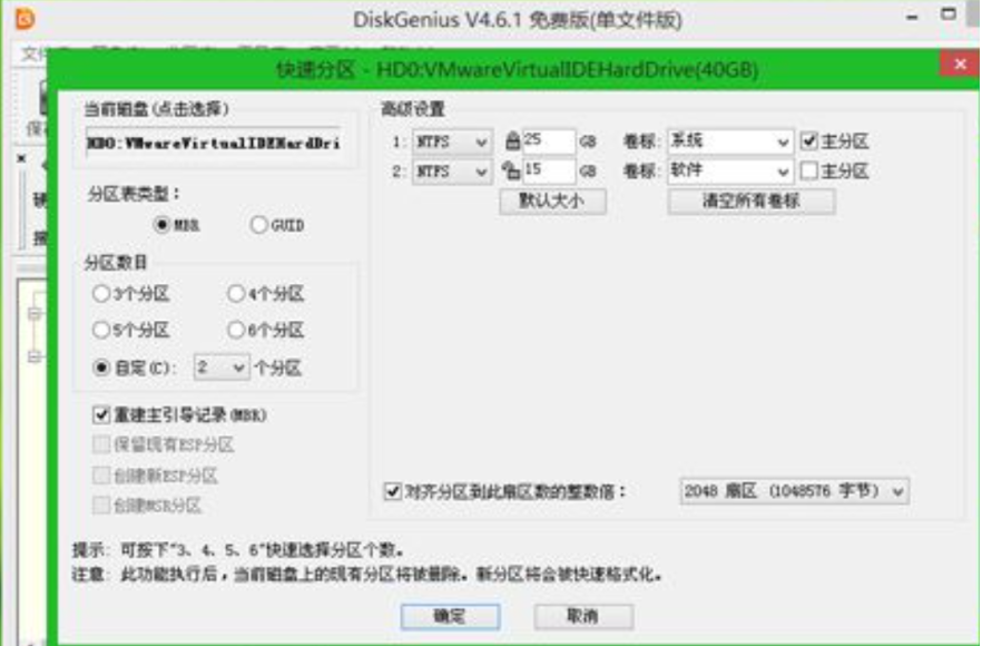 5、設置分區數目和分區,C盤建議35G以上,若是固態硬盤,勾選“對齊分區”即可4k對齊,點擊確定,執行硬盤格式化以及重新分區過程;