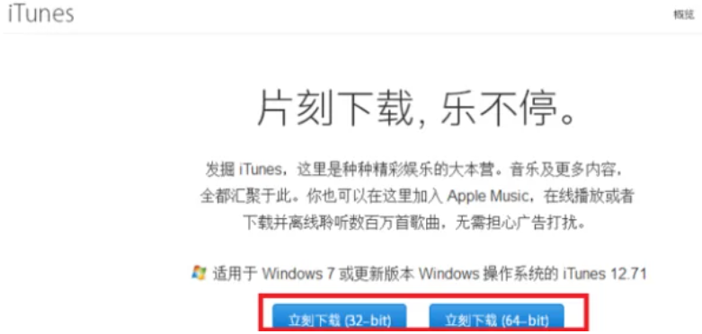 2、進入iTunes蘋果官網。如果是Windows32位系統,就選擇下載“32-bit”版本,如果是Windows64位系統,就選擇下載“64-bit”版本.
