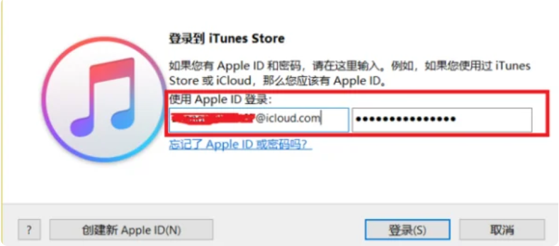 3、下載安裝完成后,打開iTunes,輸入你的“蘋果賬戶”。