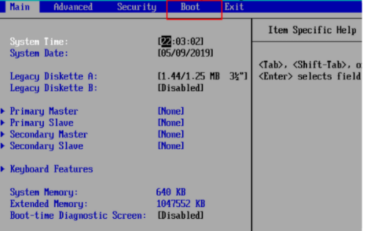 1、啟動計算機,根據F12進入BIOS設置,選擇紅框中的BOOT選項。