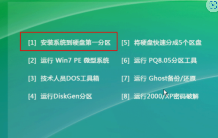 4、重啟電腦,點擊紅框中的安裝系統到硬盤第一分區。