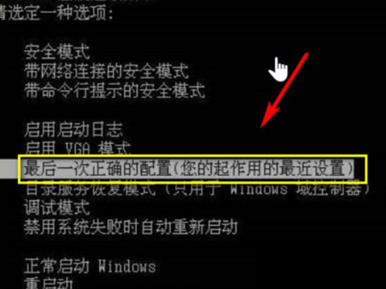 1、開機按F8不動到高級選項出現在松手,選“最近一次的正確配置”回車修復。