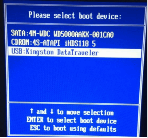 4、把u盤啟動盤插入要重裝的電腦中,開機不斷按啟動熱鍵,選擇u盤啟動回車。