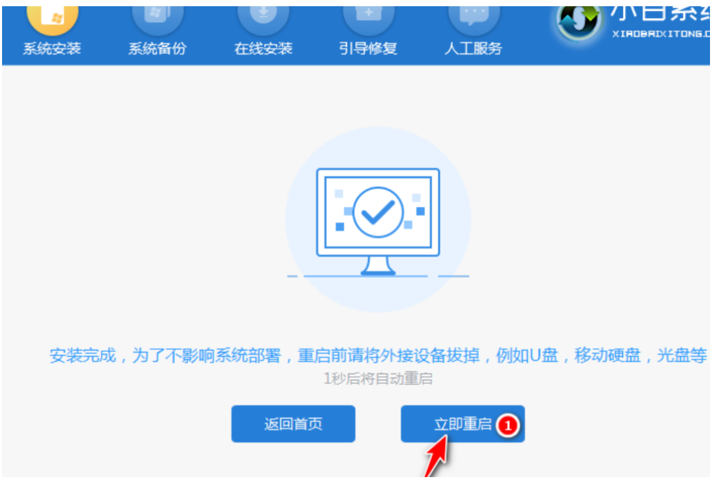 6、等待系統安裝完成后,按照提示拔掉u盤重啟電腦即可。