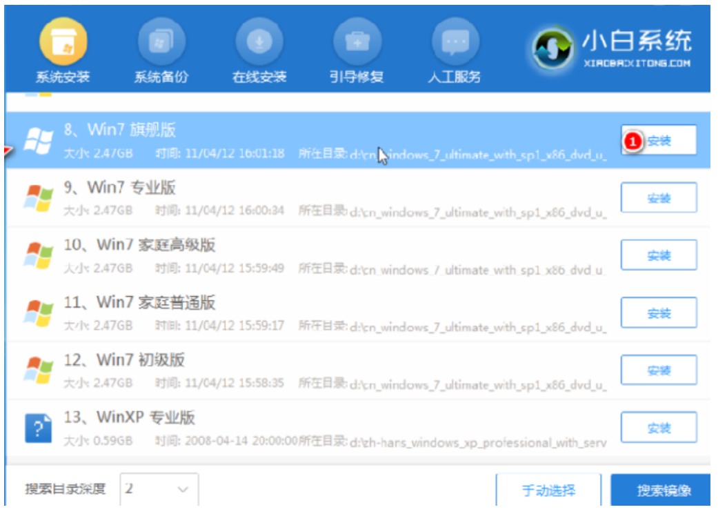 5、pe內,打開小白裝機工具選擇需要安裝的系統執行安裝,目標分區選擇“C盤”。