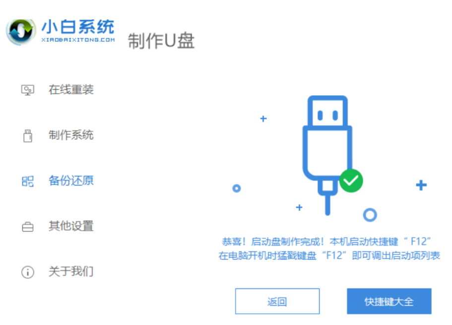 1、先在一臺可用的電腦上下載安裝小白一鍵重裝系統工具并打開,插入一個8g以上的空白u盤,選擇開始制作。