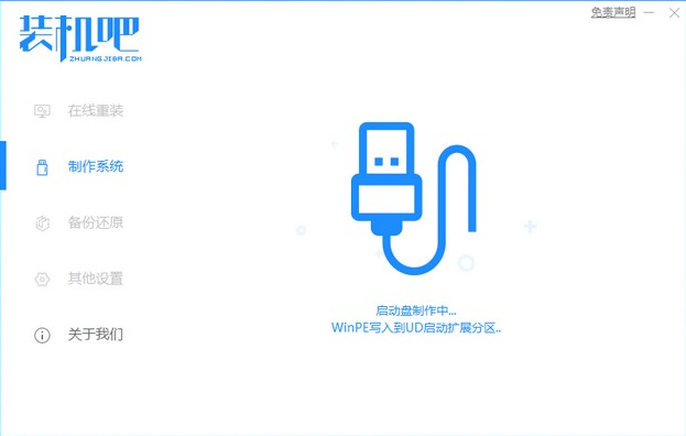 1、電腦重裝系統的第一步就是下載并安裝裝機吧一鍵重裝系統軟件,插入U盤,點擊開始制作。