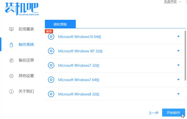 2、選擇您想重裝的系統鏡像,然后繼續點擊開始制作。