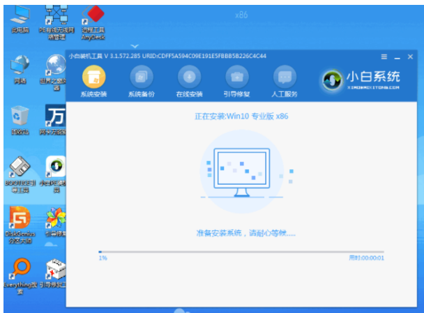 1.完成分區后設置保存,在pe桌面打開小白裝機工具,點在線安裝或單獨下載系統鏡像開始安裝win10系統。