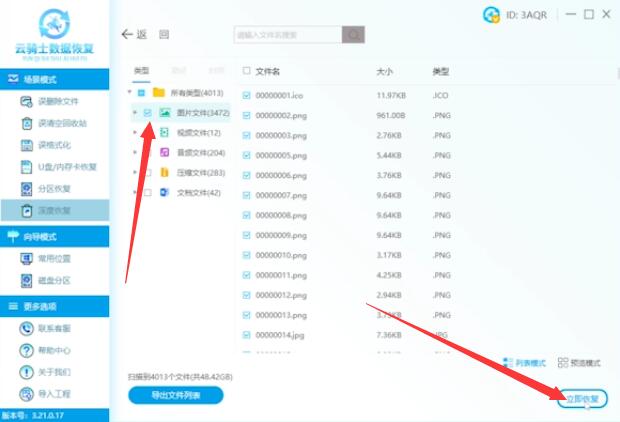 二、選擇文件立即恢復等待掃描完成,勾選要恢復的文件,點擊立即恢復