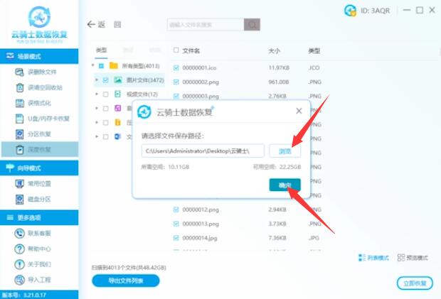 1、打開云騎士數據恢復軟件,點擊深度恢復,選擇需要恢復的分區,點擊開始掃描。