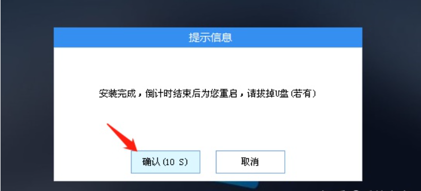 8、系統安裝完畢后,軟件會自動提示需要重啟,并且拔出U盤,再重啟電腦。
