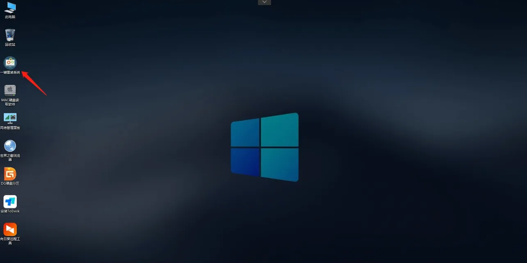 3、進入PE界面后,點擊桌面的一鍵重裝系統。