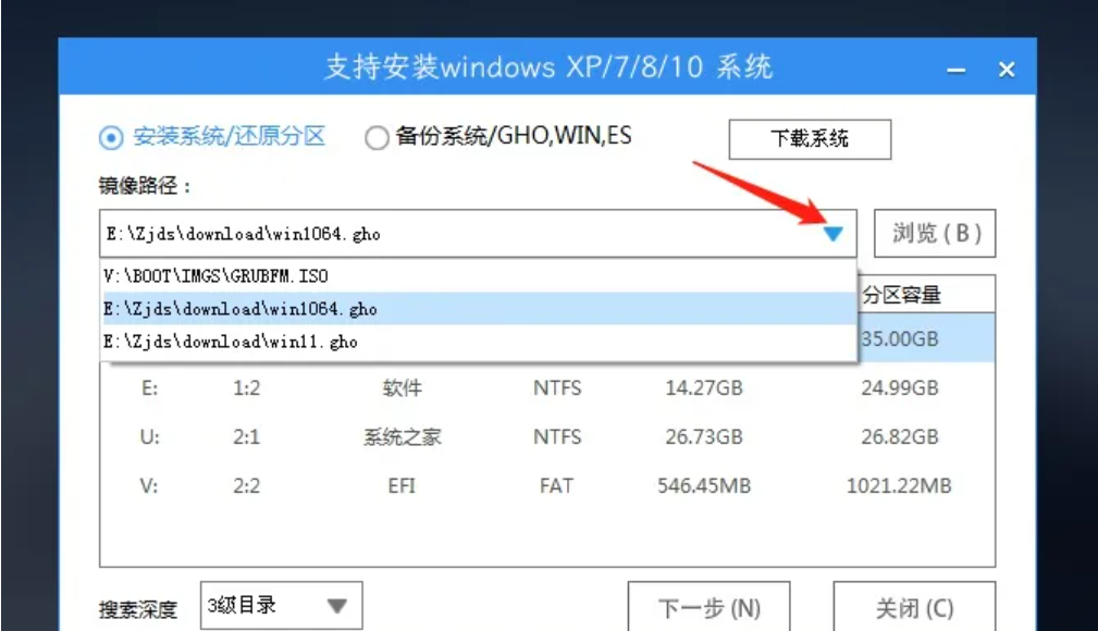 4、打開工具后,點擊瀏覽選擇U盤中的下載好的系統鏡像ISO。選擇后,再選擇系統安裝的分區,一般為C區,如若軟件識別錯誤,需用戶自行選擇。