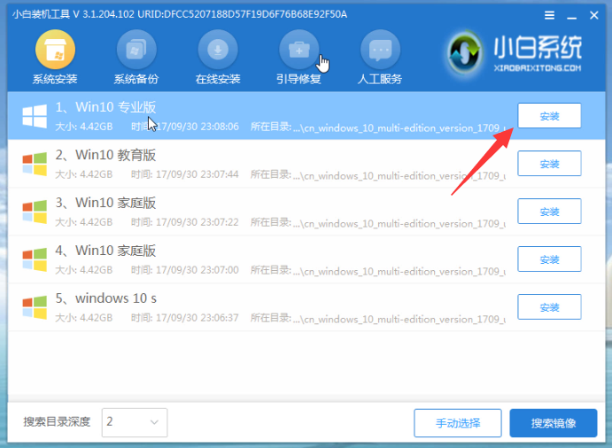 4、進入頁面后,裝機工具會搜索出我們的iso鏡像,點擊【安裝】即可