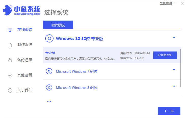 1.打開小魚一鍵重裝系統工具,選擇win10系統進行重裝;