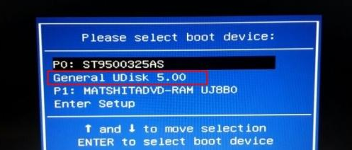 2、在電腦上插入U盤,重啟過程中按Esc調出啟動菜單,選擇識別到的U盤名稱,按回車鍵;