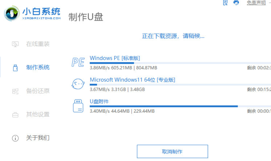 4、然后我們就可以看到正在制作小白PE系統和我們需要重裝的系統了,等待即可。