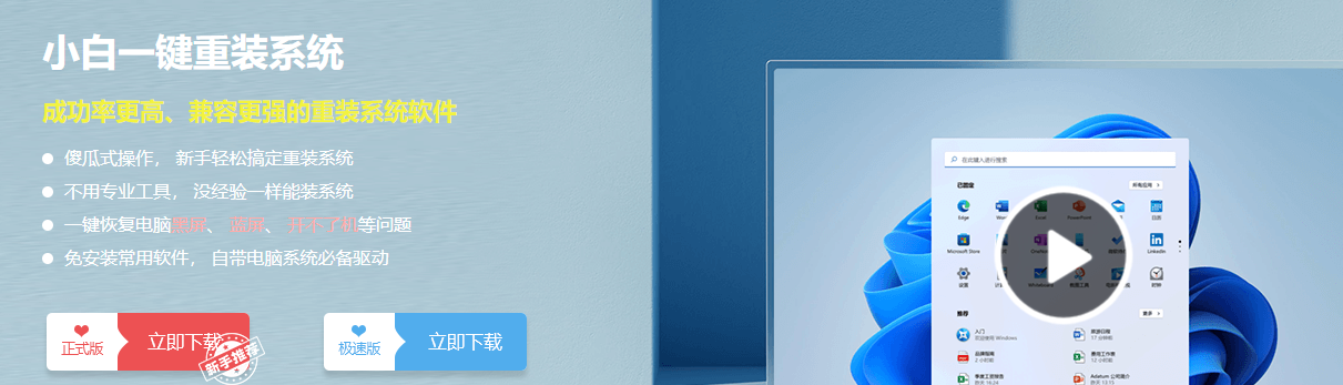 如果實在不行的話,小編推薦大家使用小白一鍵重裝來直接重裝系統,但是小編也提醒大家在重裝之前一定要提前備份好重要的數據