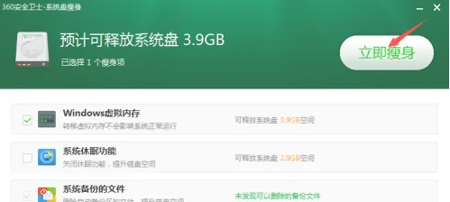 3.進入系統盤瘦身界面,點擊立即瘦身就可以了。