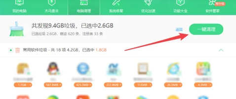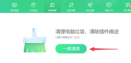 2.在【電腦清理】頁面,點擊【一鍵清理】按鈕。