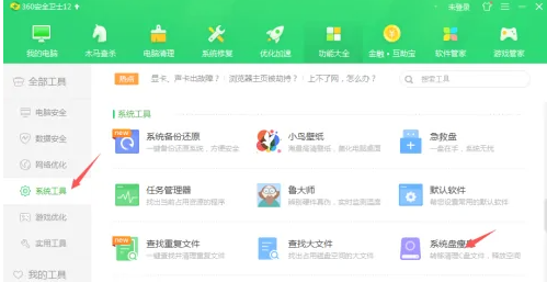 2.進入功能大全界面,點擊系統工具,找到系統盤瘦身點擊添加并打開。