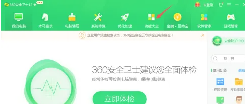 1.首先打開360安全衛士,找到功能大全點擊打開。